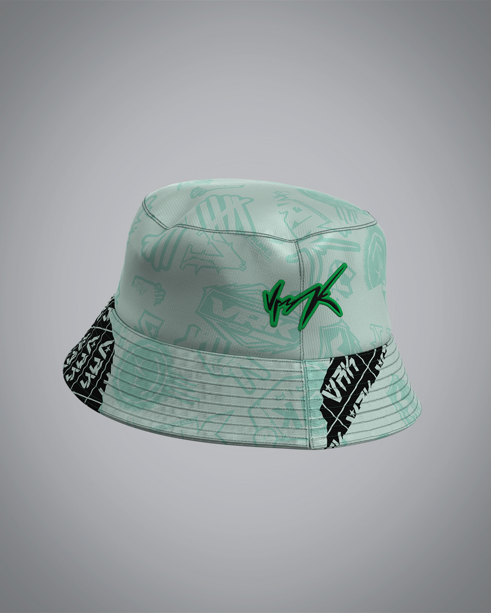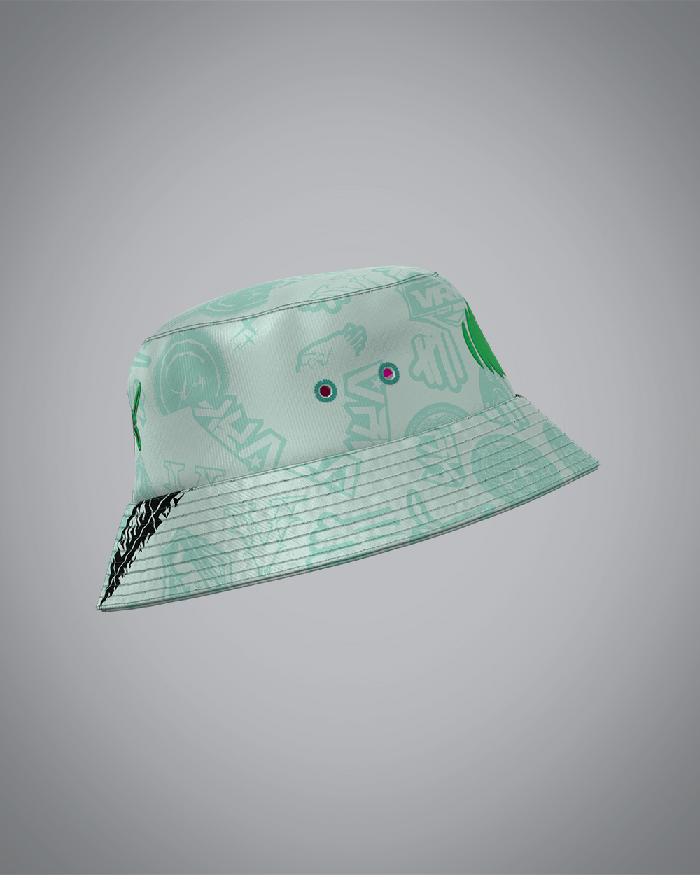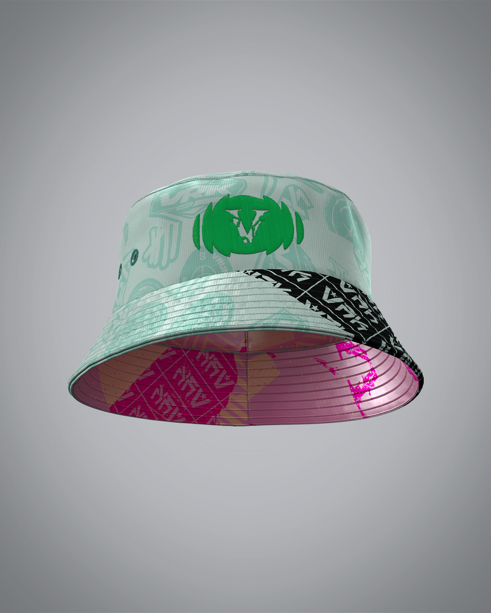 Le bob double face Vrunk allie style et fonctionnalité avec ses deux coloris complémentaires : une face rose coordonnée au maillot Chewing Gum et une face vert d'eau harmonieuse avec le maillot Mint Forest.