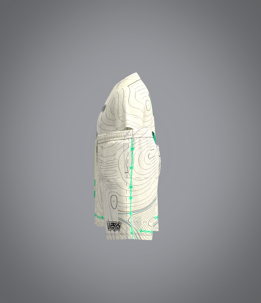 L'ensemble Champion VRK League de VRUNK est parfait pour ceux qui recherchent un style sportif et unique. Cet ensemble se compose d'un t-shirt et d'un short, tous deux ornés d'un design unique inspiré par les cartes topographiques, donnant une sensation d'exploration et d'aventure. Des éléments d'inspiration orientale ajoutent une touche culturelle unique à cet ensemble.