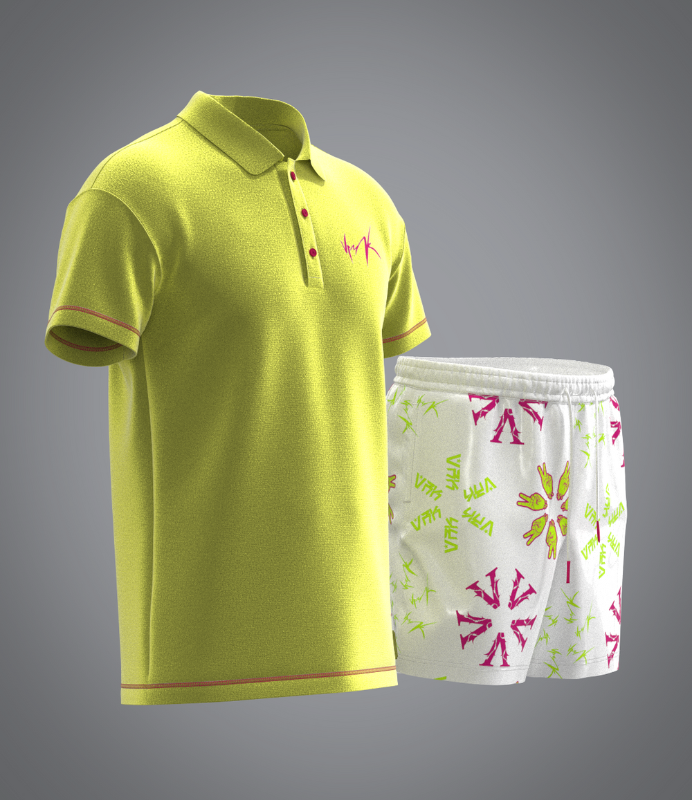 L'ensemble Sponge Yellow est une expression vibrante de style et de confort. Inspiré par les teintes ensoleillées et les textures douces, cet ensemble dynamique capte l'essence des journées d'été avec son design éclatant. Composé d'un polo en matière style éponge et d'un short assorti, cet ensemble est parfait pour ceux qui veulent allier élégance et détente.