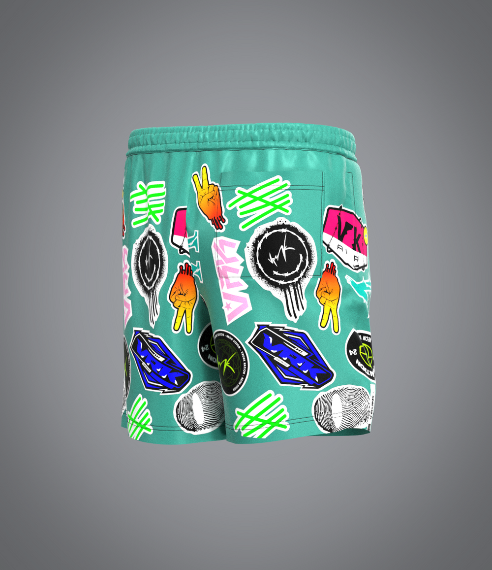 Idéal pour les journées ensoleillées, les sorties décontractées ou les séances d'entraînement, le short Stickers VRUNK vous garantit de faire tourner les têtes avec son design vibrant et unique. Exprimez votre personnalité et votre style audacieux avec ce short distinctif.